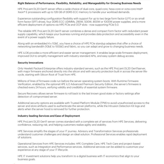 HPE PL DL20g11 6325P (3.5G/4C8T) 1x32G 2x480G SSD VROC 4SFF-HP 4p1Gb 1x1000W Smart Choice