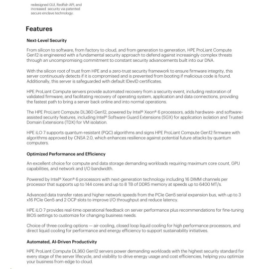 - Optional: HPE iLO 7 Advanced, HPE OneView Advanced