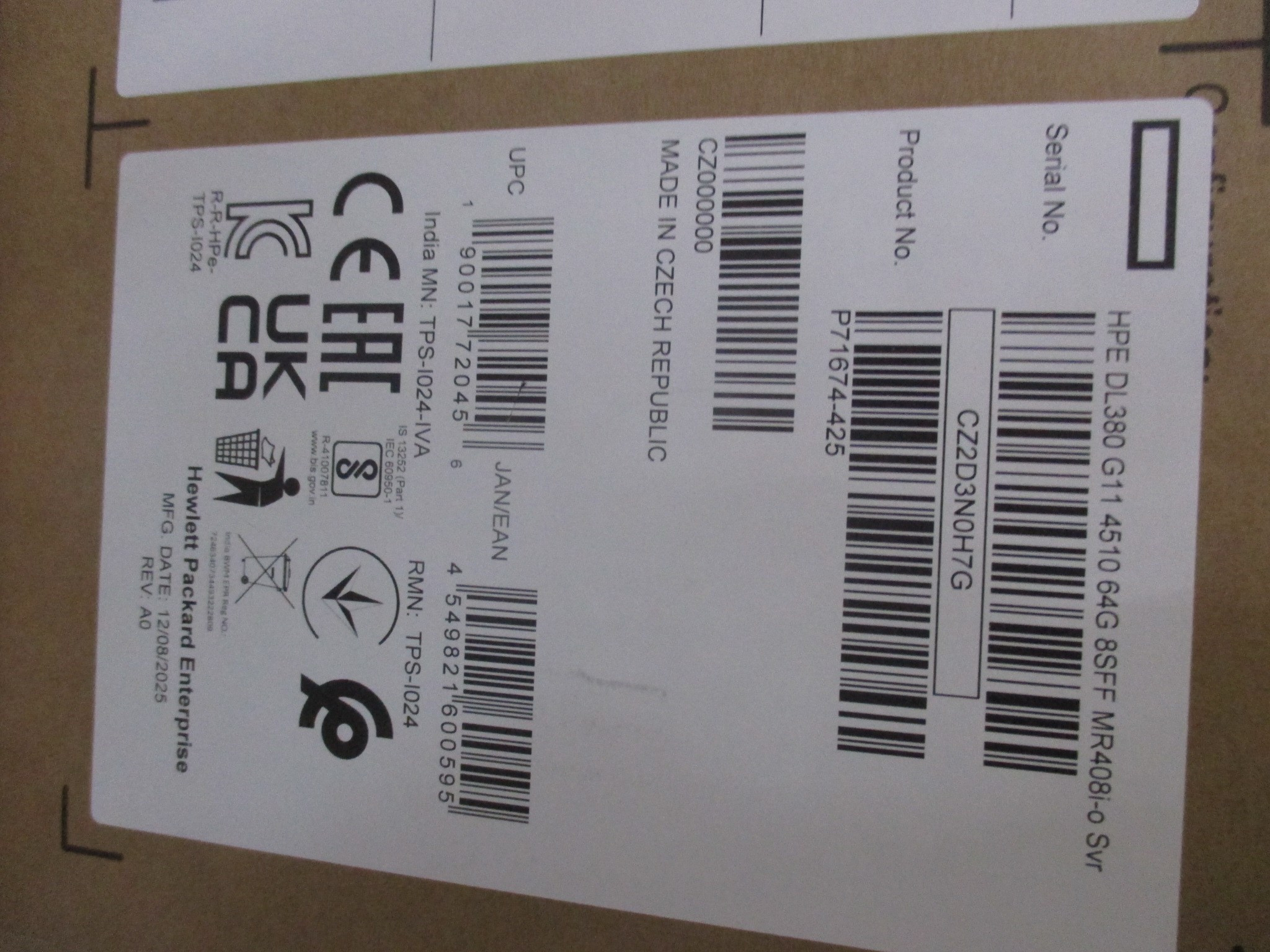 Model Name HPE PL DL380g11 4510 (2.4/12C) 2x32G 2x960G 8SFF MR408i-o 2x1000W 4x1Gb NBD333