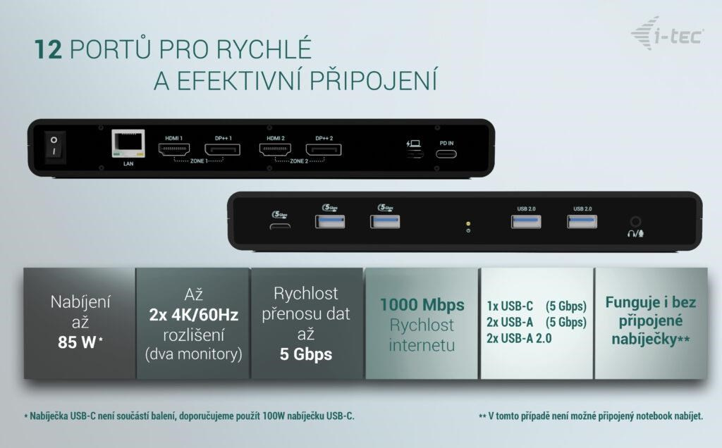 i-tec Univerzálna Dual 4K Display Docking Station + Power Delivery 85W