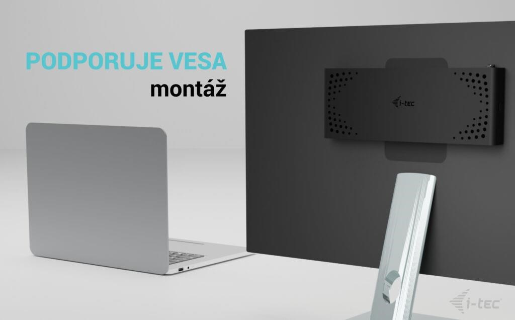 - Dokovaciu stanicu podporuje držiak VESA pre inteligentnú vertikálnu inštaláciu za monitor s podporou VESA