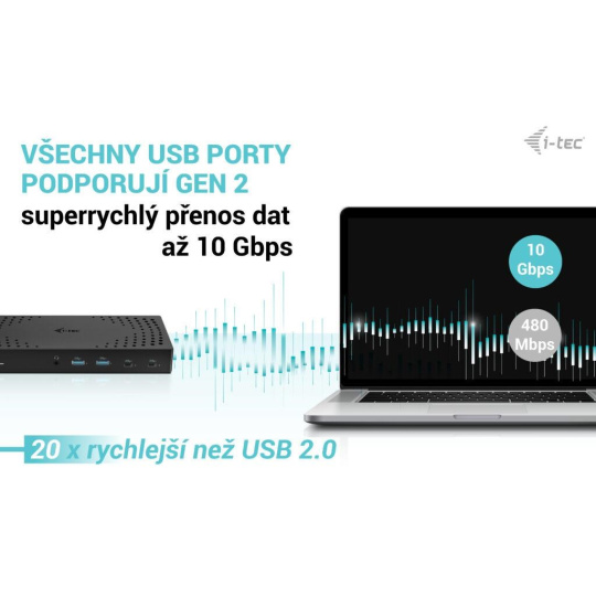 - Voliteľné klonovanie MAC adresy a automatické zálohovanie dát pripojeného počítača (pri použití softvéru i-tec Docker Pro).