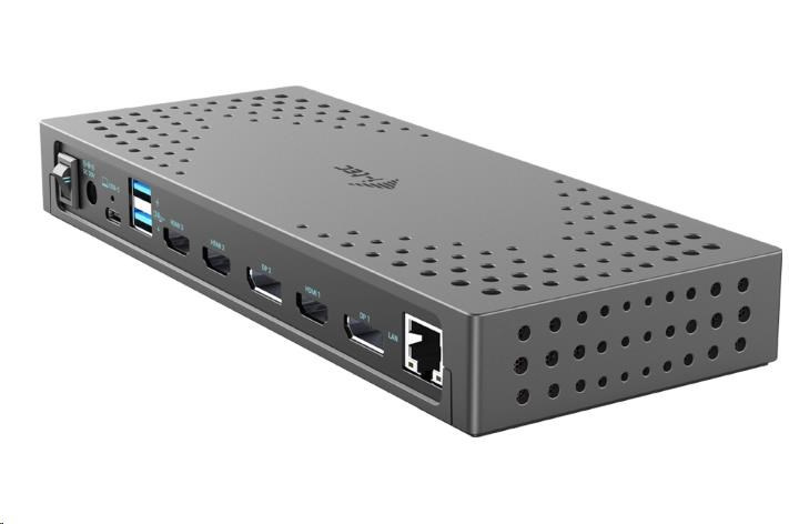 Výkonná profesionálna dokovacia stanica Gen 2, ktorá podporuje výstup až na tri externé monitory vo vysokom rozlíšení až 4K. Dokovaciu stanicu je možné prakticky použiť so všetkými notebookmi, pretože podporuje pripojenie ku všetkým bežným portom: 3.0, USB-C a Thunderbolt“ 3/4 a zároveň podporuje všetky bežné súčasné operačné systémy. Pripojenie ku trom monitorom však bude možné iba v prípade, že je notebook vybavený portom Thunderbolt“ 3/4 alebo portom USB-C, ktorý podporuje prenos videa (režim USB-C DP Alt). V prípade pripojenia k notebooku s portom USB 3.0 budú podporované iba dva monitory.