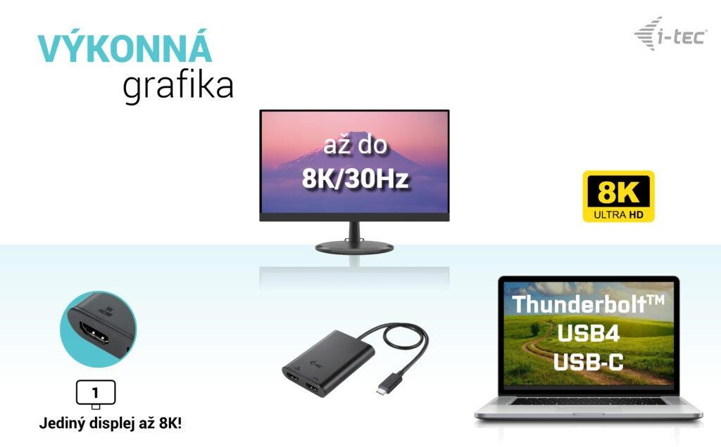 - Adaptér podporuje rozlíšenie až 1x 8K / 30 Hz alebo 2x 4K / 60 Hz