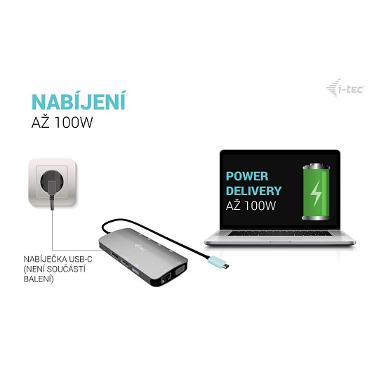 - Power Delivery až 100 W – napájení notebooku přes USB-C