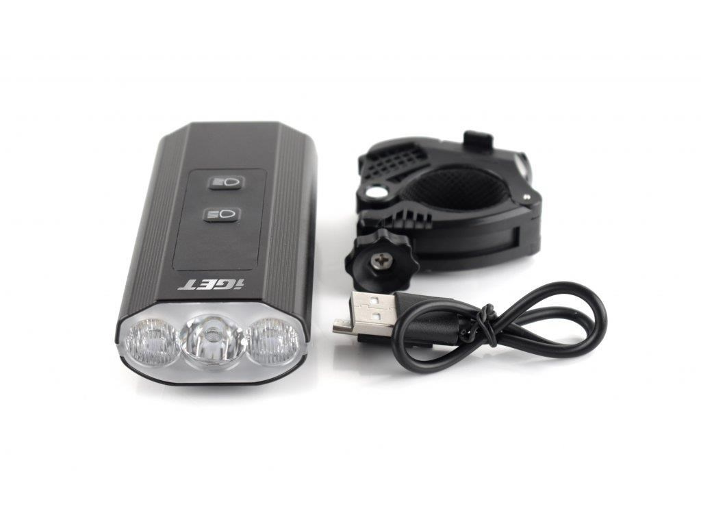 - Obsah balenia: 1x predná LED čelovka na kolo iGET LF3 Fireball, 1x USB-C kábel, 1x držiak na riadidlá, 1x používateľský manuál v CZ/SK/DE/EN/PL/HU