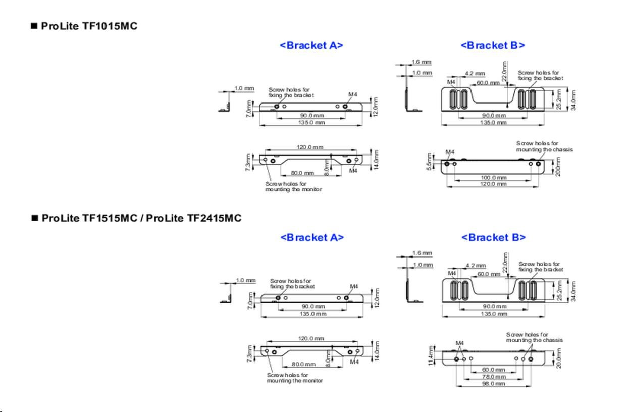 Sada montážneho držiaka pre dotykové obrazovky iiyama TFxx15MC s otvoreným rámom. Toto riešenie je kompatibilné s nasledujúcimi modelmi iiyama: TF1015MC, TF1515MC, TF2415MC.