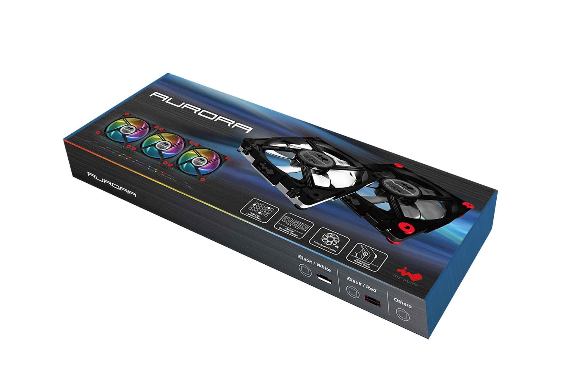 IN WIN Aurora Black/Red (3 ventilátory + regulátor + 2 x LED pásik)