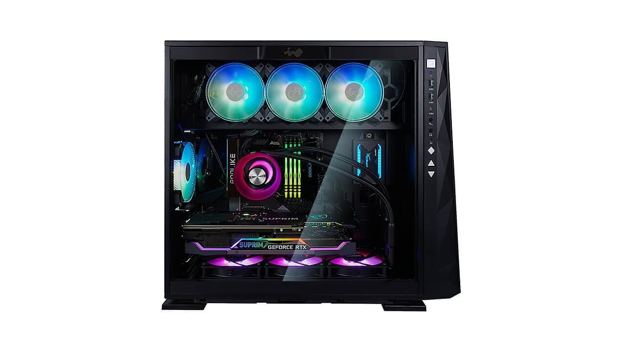 | kompatibilita tepelného riešenia | Ventilátory vzduchového chladenia: Horný: 3 x 120 mm Zadný: 1 x 120 mm Spodný: 3 x 120 mm (4 ventilátory InWin Saturn ASN120 sú súčasťou dodávky) Chladič vodného chladenia: Horný: 1 x 360 mm Zadný: 1 x 120 mm Spodný: 1 x 360 mm (Slim) |