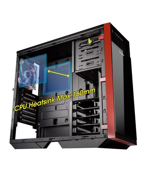 - Veľká vnútorná priehradka umožňuje umiestnenie veľkého množstva základných dosiek