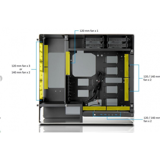 - Podporované formáty základných dosiek: 12" x 13.4" E-ATX, ATX, Micro-ATX, Mini-ITX