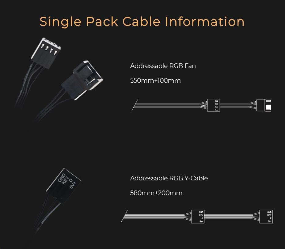Kruhový adresovateľný svetelný efekt je doplnený čiernymi lopatkami ventilátora, ktoré dodávajú solídny nádych RGB osvetlenia v PC zostavách. Dvojitá konštrukcia poskytuje používateľom možnosť inštalácie na oboch stranách.