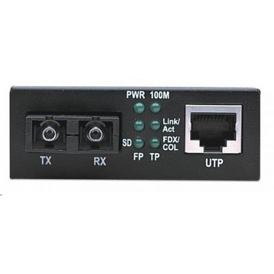 -Rýchlosť prenosu dát: 100 Mb/s -Jeden port 10/100Base-TX RJ45, maximálna vzdialenosť 100 m / 300 ft. -RJ45 port s podporou Auto MDI/MDI-X a automatickým vyjednávaním -Jeden 100Base-FX viacrežimový optický SC duplexný port -Podpora vzdialenosti optických vlákien: do 2 km / 1.24 míľ (62.5/125 alebo 50/125 µm kábel) -Vlnová dĺžka: 1310 nm -Riadenie toku -Stavové LED diódy pre napájanie a Link/TX pre oba porty -Externý napájací adaptér, 5 V DC..