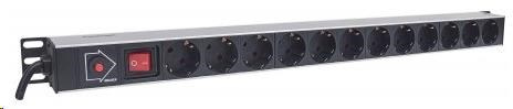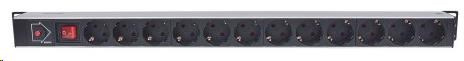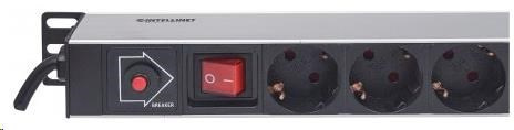 Intellinet Vertikálny 12-cestný napájací panel pre montáž do stojana - nemecký typ, distribučný panel, 12x DE zásuvka, 1.6 m kábel
