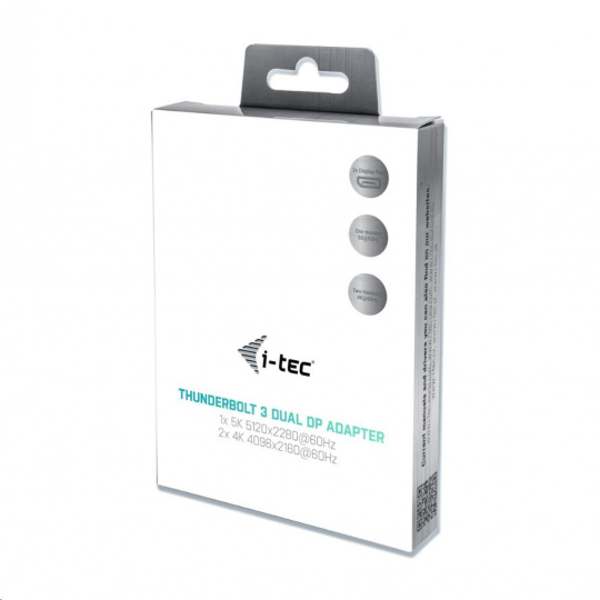 i-tec THUNDERBOLT™ 3 Dual Display Port Video Adapter pre notebooky a tablety s Thunderbolt™ 3 macOS a Windows, podporuje 1x 5K 60Hz monitor/TV alebo 2x 4K 60Hz monitor/TV