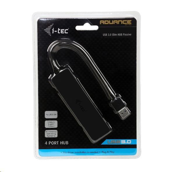 i-tec USB 3.0 Štíhly pasívny 4-portový HUB bez napájacieho adaptéra, pre notebook, ultrabook, tablet, PC, Windows a Mac OS