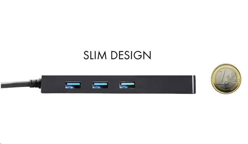Kombinuje pasívny rozbočovač HUB s adaptérom Gigabit Ethernet na jednoduché a rýchle pripojenie obľúbených zariadení USB k notebooku, tabletu, počítaču alebo smartfónu s novým rozhraním USB-C alebo Thunderbolt 3 a na vysokorýchlostný prístup k sieti a internetu prostredníctvom portu Gigabit Ethernet. HUB ponúka tri USB 3.0 portov s funkciou Plug & Play a štandardným nabíjaním USB - automaticky rozpozná, či je pripojené nabíjacie zariadenie USB. USB 3.0 je dôležitý najmä pri prenose dát z pamäťových kariet USB a flash diskov, kde je jeho vysoká prenosová rýchlosť najužitočnejšia.