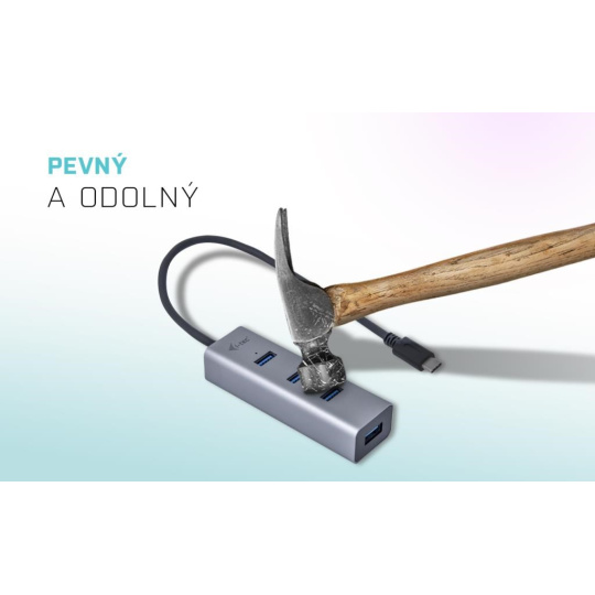 i-tec USB-C Metal 4-portový HUB, 4x USB 3.0 port na pripojenie zariadenia USB-A k novému konektoru USB-C, pre notebook tablet smartfón PC s konektorom USB-C, kompatibilný s Thunderbolt 3, Windows, Mac OS, Android, Chrome