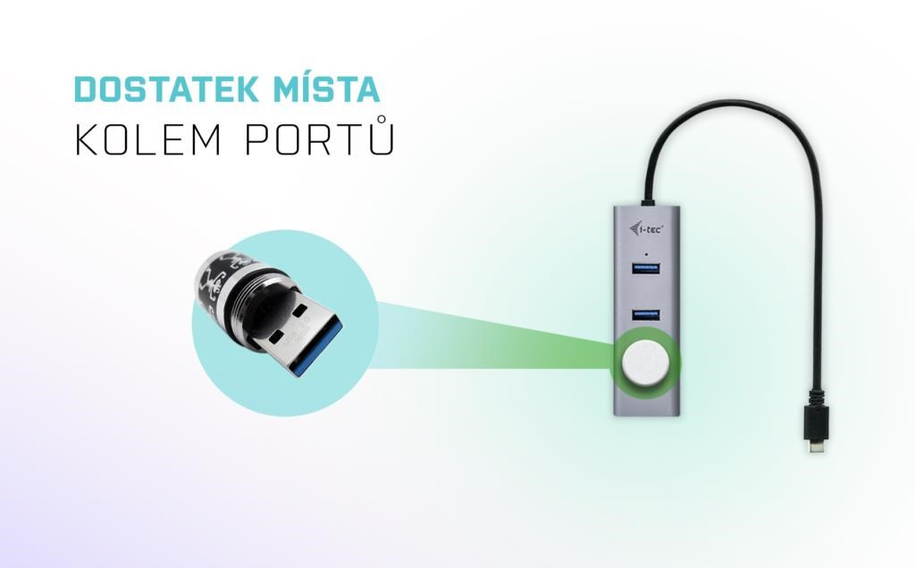 i-tec USB-C Metal 4-portový HUB, 4x USB 3.0 port na pripojenie zariadenia USB-A k novému konektoru USB-C, pre notebook tablet smartfón PC s konektorom USB-C, kompatibilný s Thunderbolt 3, Windows, Mac OS, Android, Chrome
