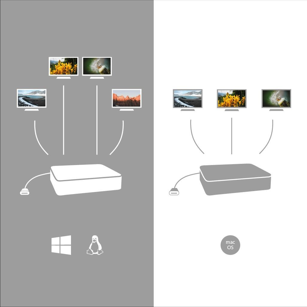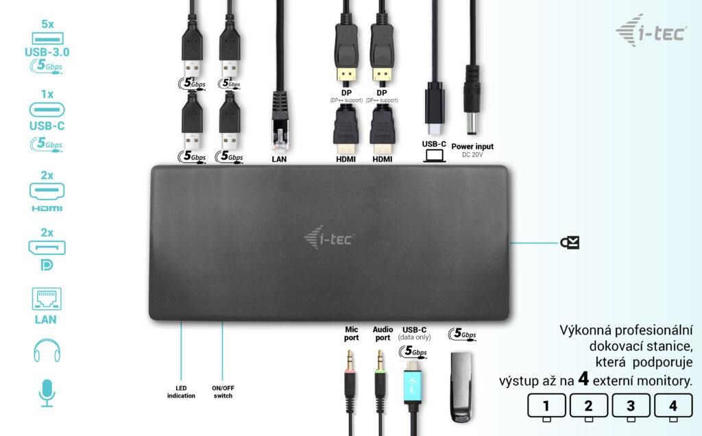 Profesionálna dokovacia stanica USB-C, ktorá podporuje výstup až pre štyri externé monitory. Táto dokovacia stanica je vybavená hybridným zobrazovaním: je postavená na technológiách prenosu obrazu DisplayLink a USB-C, čo jej umožňuje spracovávať obraz až na štyroch zobrazovacích zariadeniach.