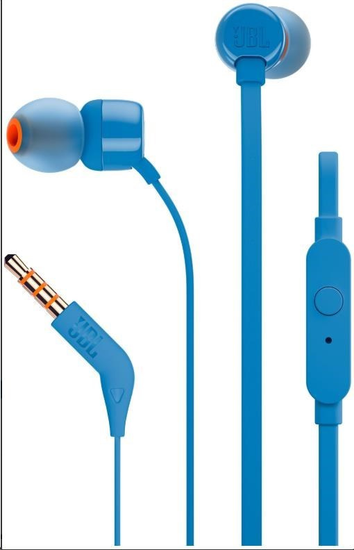 JBL T110 Black špuntová sluchátka, 3,5 mm jack, mikrofon, modrá