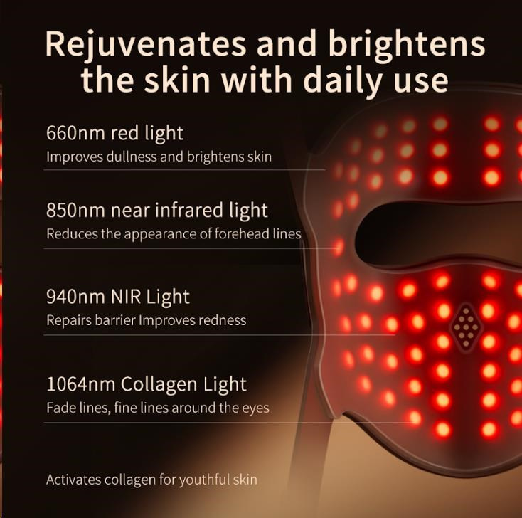 • 940nm (NIR): Posilňuje metabolizmus a pomáha rozptyľovať pigmentáciu. Ideálne pre zarudnutie a mdlú pleť na tvárach.