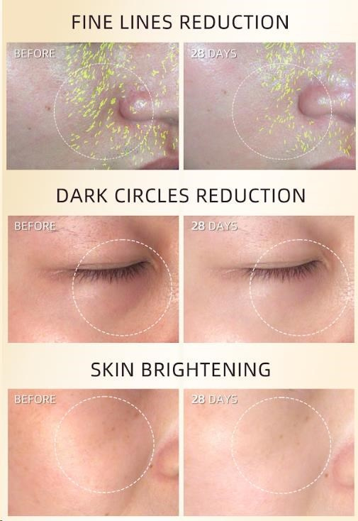 • Klinicky overené zníženie vrások okolo očí o 24,56% a tmavých kruhov o 29,41% za 28 dní.