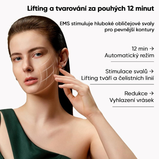 Liftingová maska JOVS EMS využíva pokročilú technológiu EMS, ktorá bola pôvodne dostupná len v lekárskych a estetických centrách na rehabilitáciu svalov a profesionálny lifting tváre. Jemné elektrické impulzy stimulujú hlboké vrstvy tvárových svalov, podporujú produkciu kolagénu a obnovujú pružnosť pokožky, čo vedie k viditeľnému spevneniu a kontúrovaniu. S touto technológiou môžete dosiahnuť profesionálne výsledky priamo doma, pohodlne a bez invazívnych procedúr.