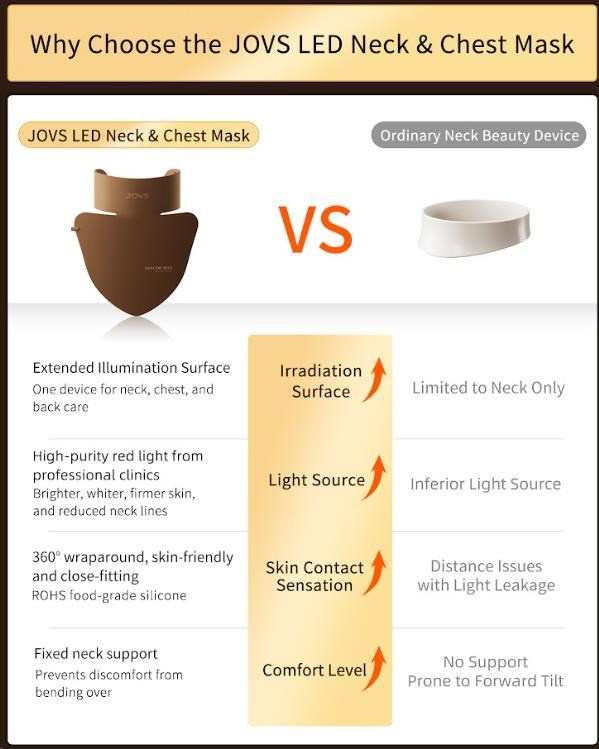 Péče o pleť nekončí u tváre. Objavte profesionálne ošetrenie pre často opomínané partie a doprajte si luxus, ktorý vaša pokožka na krku, v dekolte a na chrbte pocíti aj uvidí. Predstavujeme vám svetelnú masku JOVS, inovatívne riešenie od prémiovej značky, ktorá prináša technológie z estetických kliník priamo k vám domov. Zbohom nedokonalostiam a odhaľte mladistvejšiu a žiarivejšiu pokožku bez nutnosti drahých a časovo náročných procedúr v salónoch.