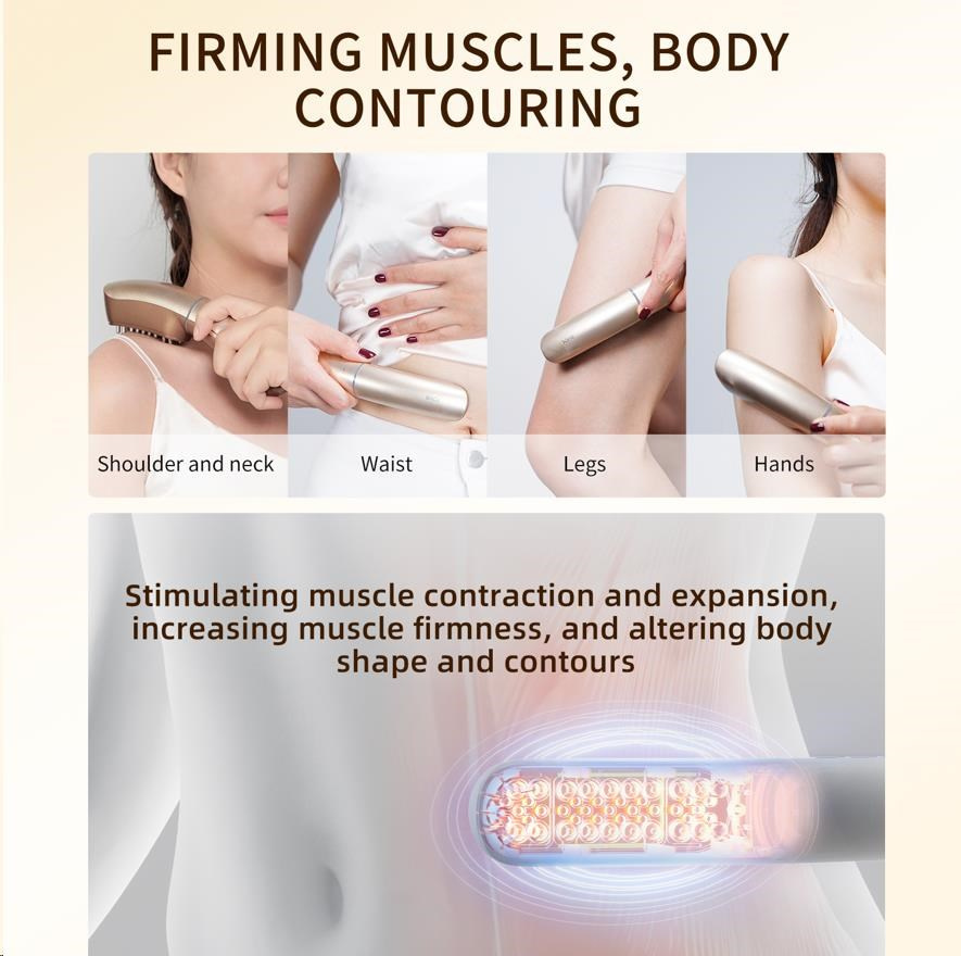 - Starostlivosť o telo (Režim SNE): Intenzívne pulzy simulujú masáž hlbokých tkanív, stimulujú svalové kontrakcie, a tým pomáhajú spevniť a vytvarovať problematické partie ako sú paže, brucho alebo stehno.
