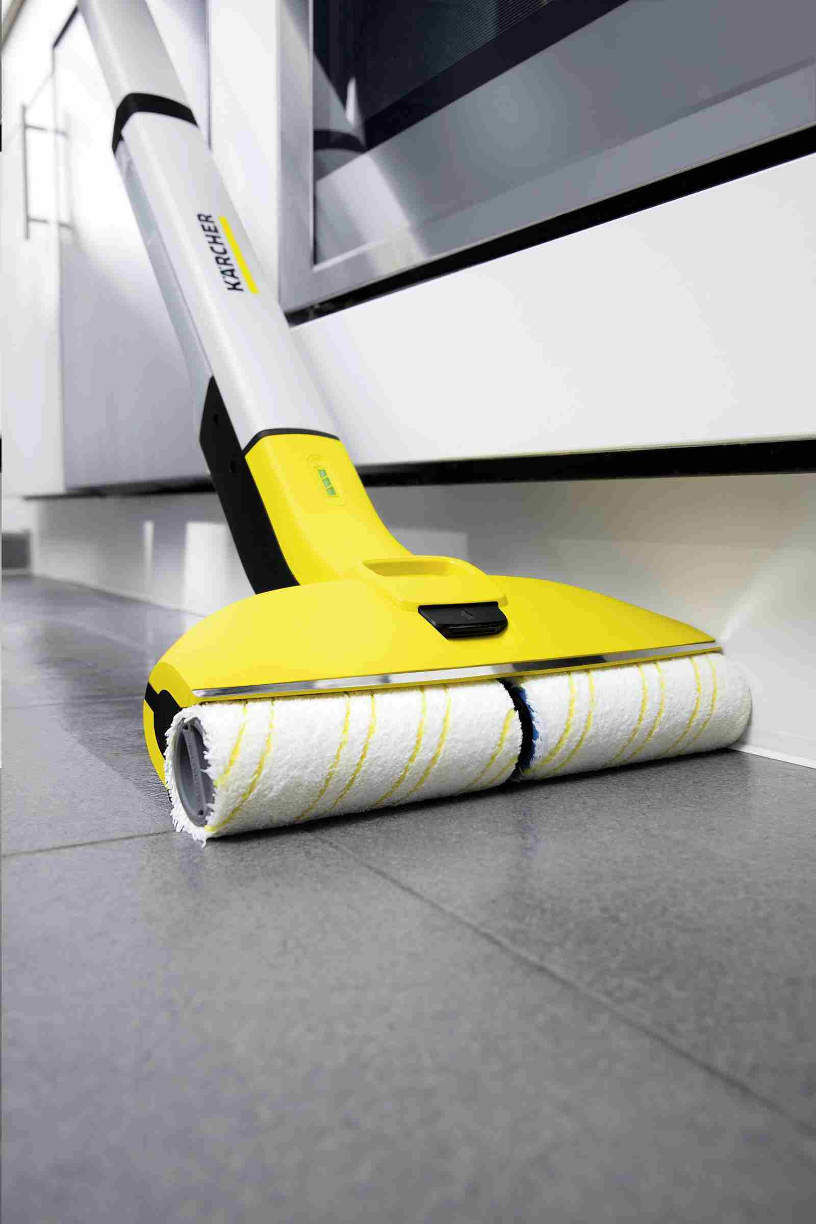 Vytierať stále čistou vodou? Bateriová podlahová myčka FC 3 Cordless sa o to postará. Nečistoty sú zhromažďované v nádobkách umiestnených za valcami. Rotujúce valce neustále zvlhčuje čistá voda, zatiaľ čo vytierané nečistoty sa dostanú do nádrže špinavej vody. Podlahy sú tak o 20 percent čistejšie ako pri použití bežného mop. Štíhla konštrukcia myčky FC 3 Cordless zabezpečuje bezproblémovú prácu aj pod nábytkom a jej pohodlné uloženie bez veľkých nárokov na miesto. Otočný kĺb sa postará o bezproblémové čistenie okrajov i rohov. Čas potrebný na uschnutie podlahy je iba približne 2 minúty, čím je možné túto myčku používať úplne bez starostí aj na tvrdé podlahy (napríklad aj na parkety). Výkonná lítiovo-iónová batéria poskytuje maximnú voľnosť pohybu, pretože je možné vytierať úplne nezávisle od zásuviek. A intuitívna LED kontrolka priebežne informuje o stave batérie.