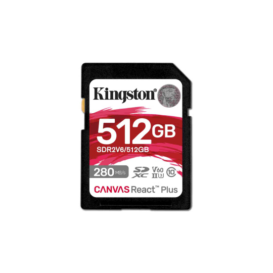 Kingston SDXC karta 512GB Canvas React Plus, UHS-II, U3, V60, R:280/W:150MB/s