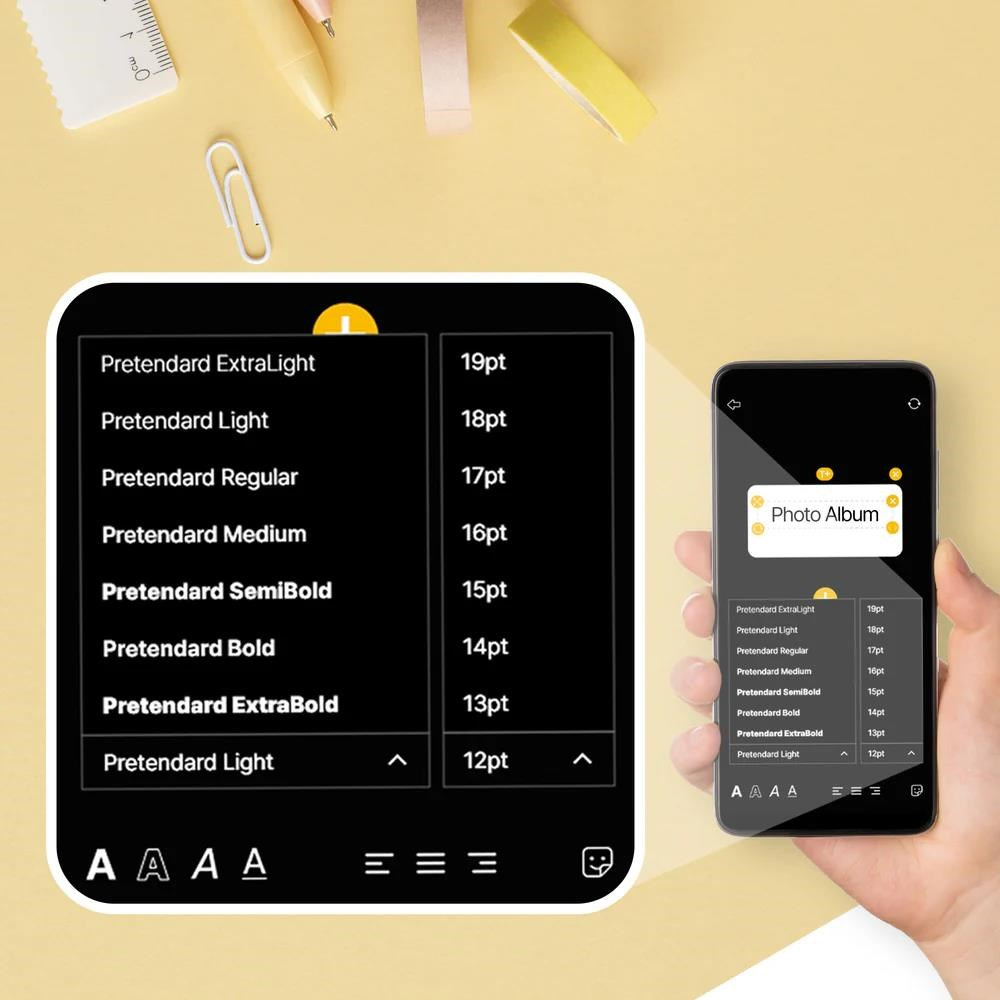 Vytvárajte a upravujte štítky priamo zo smartfónu. Importujte obrázky, pridajte text a upravte rozvrhnutie. Vyberajte zo širokej ponuky fontov, samolepiek a emotikonov pre štítky akéhokoľvek účelu.