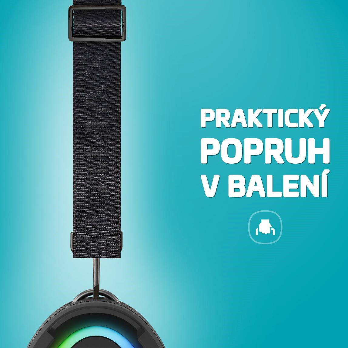 Minimalistický, ale moderný a vychytaný design repráku s LED podsvietením upúta na prvý pohľad a je škoda schovávať ho doma. Pridali sme preto ergonomický popruh pre ľahký prenášanie, nech si svojho parťáka môžeš brať kamkoľvek so sebou. Keď zmoknete, nič sa nedeje, vodeodolnosť IPX6 má vodu pod kontrolou. A ak by ťa trápilo, že budeš musieť študovať návod, tak klídek, tu je ovládanie tak jednoduché a intuitívne, že ho zvládne aj decko.