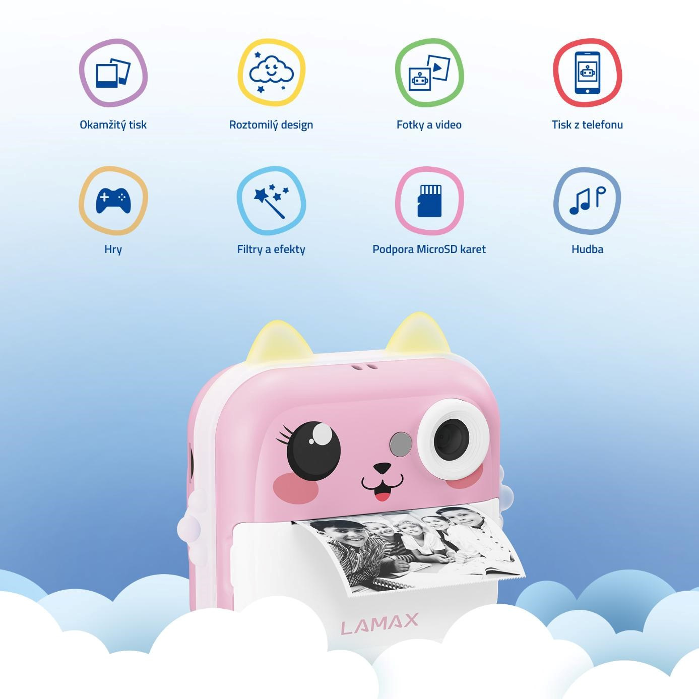 Objavte kúzlo zachytených momentov, ktoré si vaše deti vytlačia počas pár sekúnd. Detský fotoaparát LAMAX InstaKid2 Plus s okamžitým tlačom nie je len roztomilý na pohľad. S českou aplikáciou, vysokým rozlíšením fotiek aj videa a sadou kreatívnych nástrojov sa stáva zábavným parťákom na výlety i do izbičky. Deti si s ním nielen vyfotí svoje zážitky, ale hneď si ich aj vytlačia, vymaľujú priloženými fixkami a nalepia do denníka alebo kamkoľvek budú chcieť. Pomocou aplikácie potom zvládnu tlačiť fotky a poznámky z telefónu, skenovať texty zo zošitov, prekladať snímky do animovaného štýlu alebo si s pomocou AI vymaľovať čiernobiele obrázky. A keď si od fotenia chcú na chvíľu oddýchnuť? O zábavu sa postarajú aj vestavné hry.LAMAX InstaKid2 Plus fotoaparát podporuje kreativitu, samostatnosť i hravé učenie a kto vie, možno práve tento foťák odštartuje kariéru vášho dieťaťa vo svete fotografií a filmu.