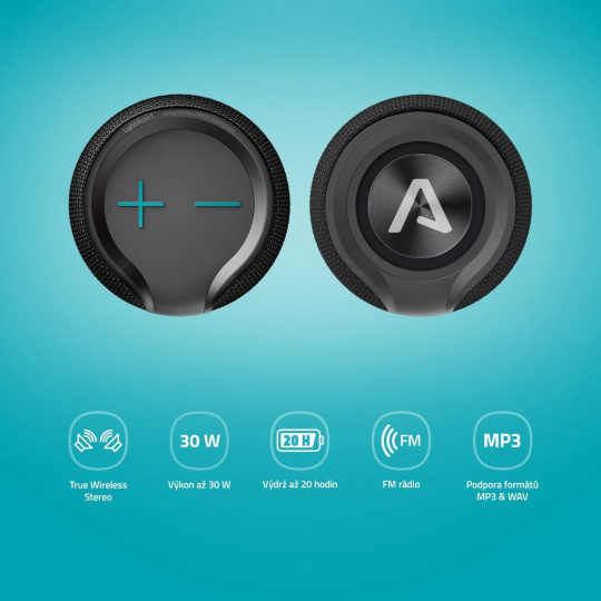Reprak sa vie automaticky spárovať s tvojím zariadením až na 15 metrov cez najmodernejšie Bluetooth 5.3, ale nie je žiadny problém pokiaľ máš playlist v počítači, na micro SD alebo inde. Tých podporovaných typov pripojení sa ponúka množstvo (Micro SD, USB-A, AUX) rovnako ako formátov (MP3, WAV). Nevadí ani, keď nemáš po ruke vôbec nič, precvakni na FM rádio a potichu nezostaneš. Chceš to rozbehnúť viac? Využi funkciu True Wireless Stereo a pripoj si ďalší reprák, to bude ešte len hukot.