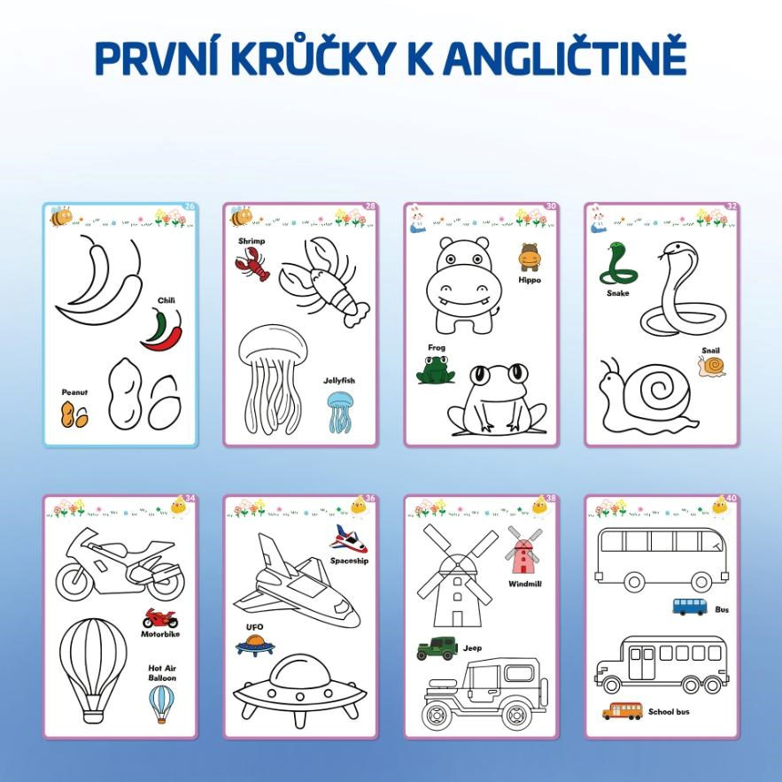 Kresliaca tabuľka je viac než len zábava. Vďaka 40 šablónam si precvičia písmená, čísla, naučia sa pomenovávať zvieratá, dopravné prostriedky, ovocie aj zeleninu. A pretože sú objekty na šablónach popísané aj anglicky, dostanú sa nenásilne aj k prvým slovíčkom v cudzom jazyku. Písanie, počítanie aj kreslenie sa tak mení na dobrodružstvo, ktoré podporuje jemnú motoriku, koncentráciu a zvedavosť.