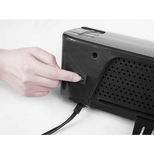 Výkonný kancelársky stroj s jednoduchým nastavením sily laminovacích kapsičiek, vďaka ktorému prispôsobí optimálne parametre pre laminovanie konkrétneho dokumentu. 4 válce zabezpečujú vynikajúcu kvalitu laminácie až do hrúbky 250mic. Laminátor sa vďaka technológii RSH dokáže nahrejeť na prevádzkovú teplotu za menej než 1 minútu a disponuje vysokou rýchlosťou laminácie až 480 mm/min. Robustnosť laminátora zabezpečuje kompaktná kovová konštrukcia. Za zmienku tiež stojí funkcia automatického vypnutia stroja po 30 minútach nečinnosti. Svetelná aj zvuková signalizácia zapnutia a dosiahnutia nastavenej teploty. - Zvuková aj svetelná signalizácia - Elegantný dizajn - Grafické ikony pre optimálne vkladanie laminovacích kapsičiek - Vypnutie stroja po 30 minútach nečinnosti - Možnosť nastavenia troch druhov sily laminácie