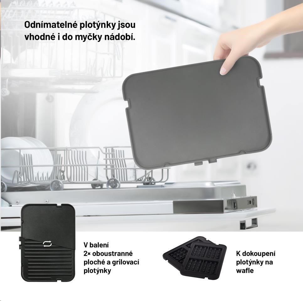 Grilovacie platničky sú odnímateľné a vhodné do umývačky riadu.