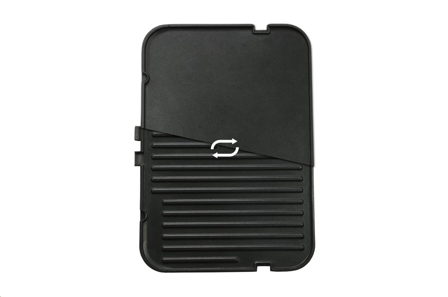 Obojstranné platničky ponúkajú klasickú rebrovanú plochu, ale aj hladkú pre väčšiu variabilitu pokrmov.