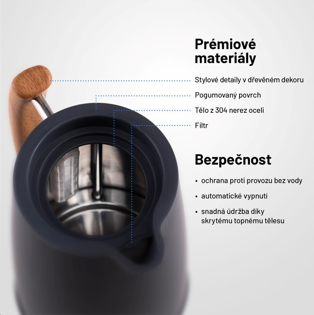 Topné teleso konvice je skryté, menej sa zanáša a vodný kameň tak nemá takmer šancu.