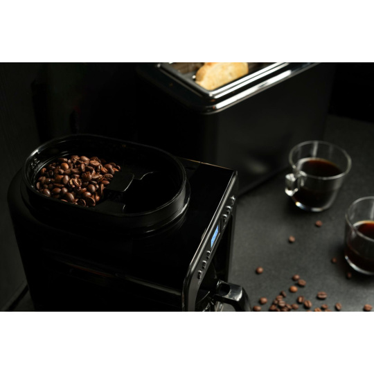 Príprava prekvapkávanej kávy nebola nikdy jednoduchšia, z jednej dávky si dáte 4 šálky, takže okrem raňajok zostane napríklad aj na kávu so sebou. Všetko potrebné nastavíte na prehľadnom a intuitívnom digitálnym displeji a kávovar môžete nechať pracovať, kým do sklenenej kanvica s objemom 560 ml nenakvapká výborná káva. Sklo je odolné a zároveň sa jedná o zdravotne nezávadný materiál. Ak nechcete čakať, systém Antidrip umožňuje naliať si šálku ešte pred skončením celého vriaceho cyklu bez toho, aby káva vytiekla mimo nádoby. Ďalšou možnosťou je časovač, vďaka ktorému môžete mať kávu pripravenú hneď po prebudení.