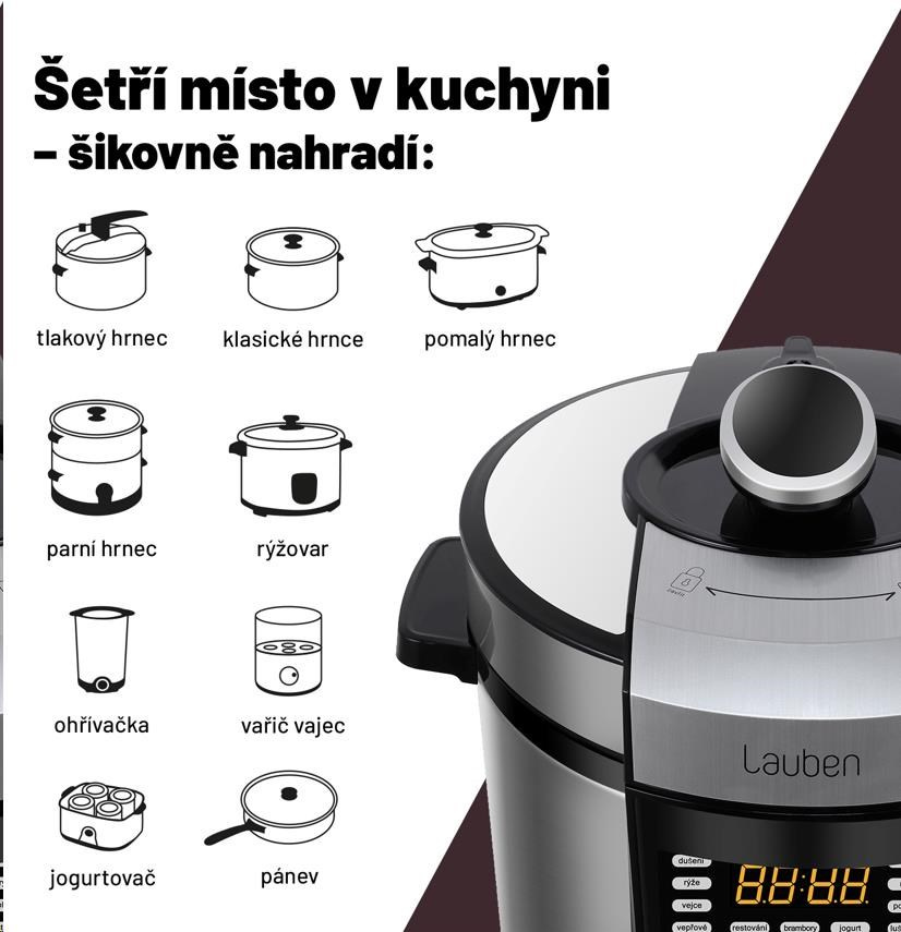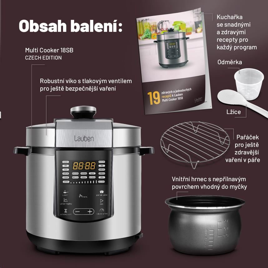 rticle id="description_lauben_2019-11-19"> Lauben Multi Cooker 18SB CZECH EDITION - Multifunkčný tlakový hrniec Jeden prístroj, nespočet možností Lauben Multi Cooker 18SB je multifunkčný tlakový hrniec, ktorý vám vďaka 18 prednastaveným programom ušetrí v kuchyni veľa času a námahy. Okrem tlakového hrnca... viac
