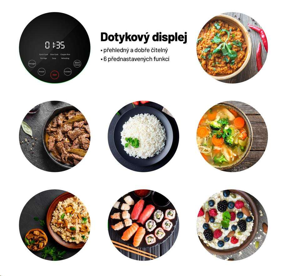 K dokonale uvarenej ryži, ktorá je vláčna, a tak akurát na skus, často vedie trnitá cesta. S ryžovarom Lauben pripravíte akýkoľvek druh ryže presne al dente, stlačením jedného tlačidla. Ryža je však iba začiatok. Ryžovar si vďaka 6 chytrým funkciám poradí aj s inými surovinami. Počas niekoľkých minút pripravíte lahodné polievky, nadýchanú ovsenú kašu alebo strukoviny bohaté na bielkoviny. Samozrejmosťou je funkcia opätovného ohrevu. Chcete si vychutnať dokonale pripravené, zdravé a chutné jedlo? Stačí si na displeji zvoliť požadovaný režim a počkať na bezchybný výsledok.