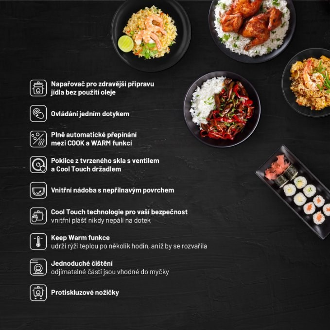 O vonkajšiu časť ryžovaru sa vďaka technológii Cool touch nikdy nespálite.