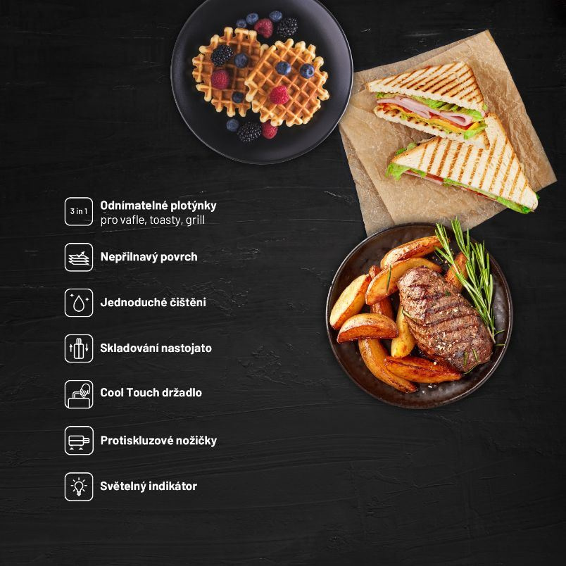 toastov môžete sendvičovač použiť aj na raňajkové vafle alebo grilovanie mäsa. Stačí si vybrať príslušnú platňu. Sendvičovač Lauben sa tak pre vás stane pomocníkom počas hektických dní, ale oceníte ho aj pri príprave lahodnej raňajky, ktorá vám nezaberie celé dopoludnie.