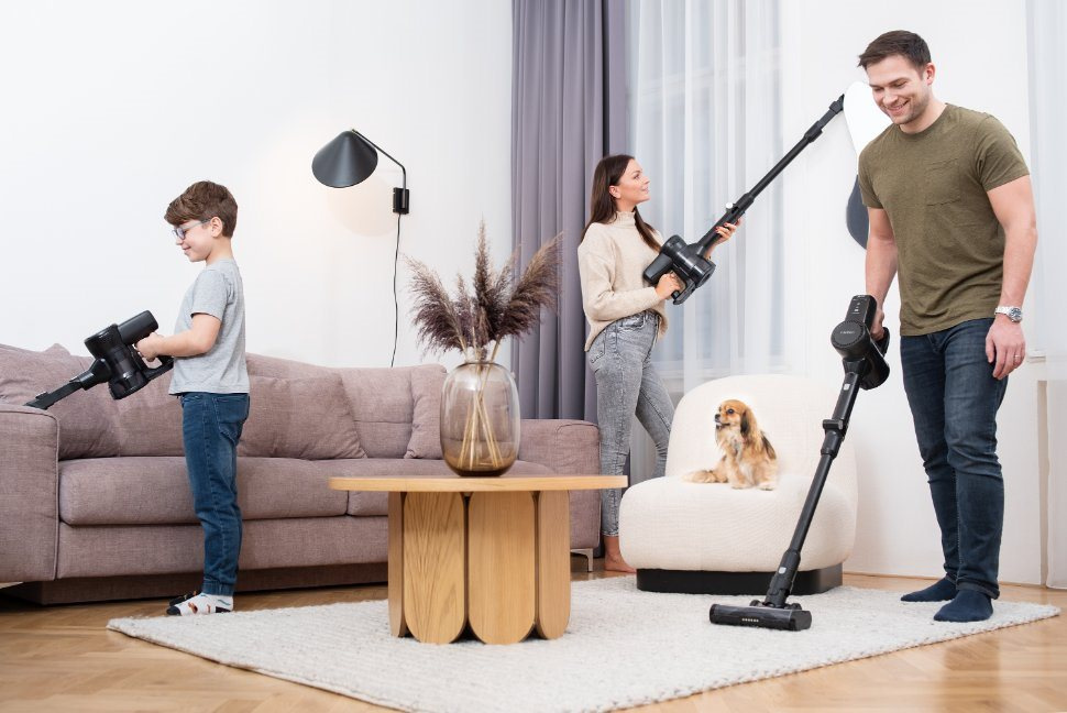 Nadčasový dizajn s prémiovým matným čiernym povrchom, ktorý pokrýva aj kovové časti a kefky, sa hodí do každej domácnosti. Nehygienickým a neekologickým sáčkom odzvonilo, zbieracia nádoba sa stačí vysypať a pokračovať v upratovaní. A kto by nevedel, ako na to, návodný video tutoriál ukáže správne zaobchádzanie s vysávačom.