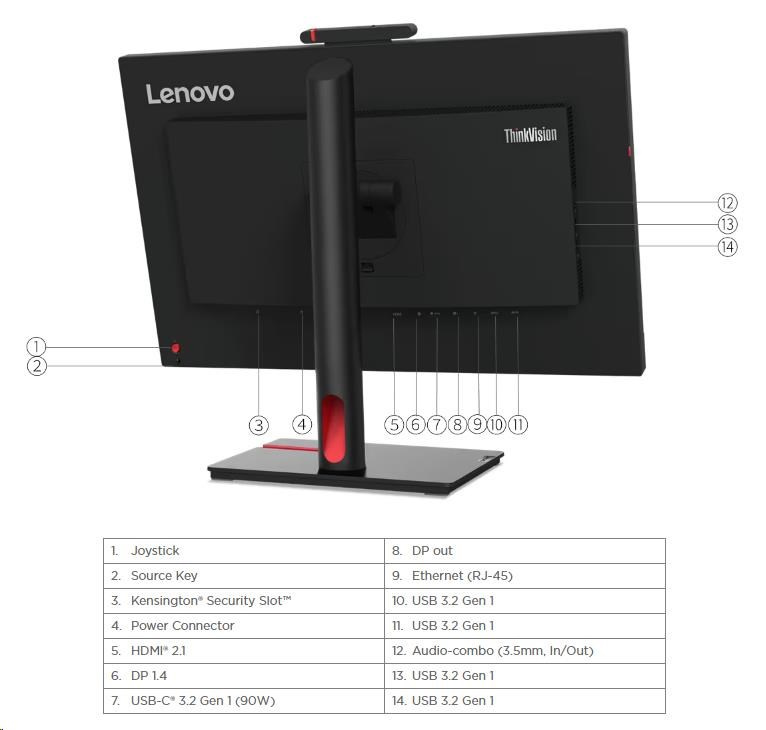 LENOVO LCD T24mv-30 - 23.8”,IPS,16:9,1920x1080,4ms/6ms,250cd/m2,1000:1,VGA,DP,HDMI,5xUSB,USB-C,RJ45,VESA,cam,rep,Pivt