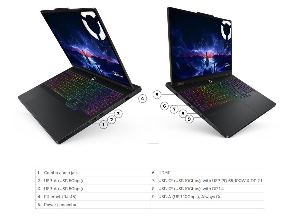 LENOVO NTB Legion Pro 5 16IRX10 - i9-14900HX,16" WQXGA IPS,32GB,1TSSD,HDMI,RTX 5060 8GB,W11H,3Y CC