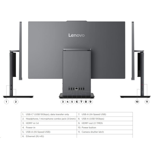 | Standartné porty | 1x USB-A (USB 10Gbps / USB 3.2 Gen 2) 2x USB-A (Hi-Speed USB / USB 2.0) 1x HDMI®-in 1.4 1x HDMI®-out 2.1 TMDS 1x Ethernet (RJ-45) 1x power connector |